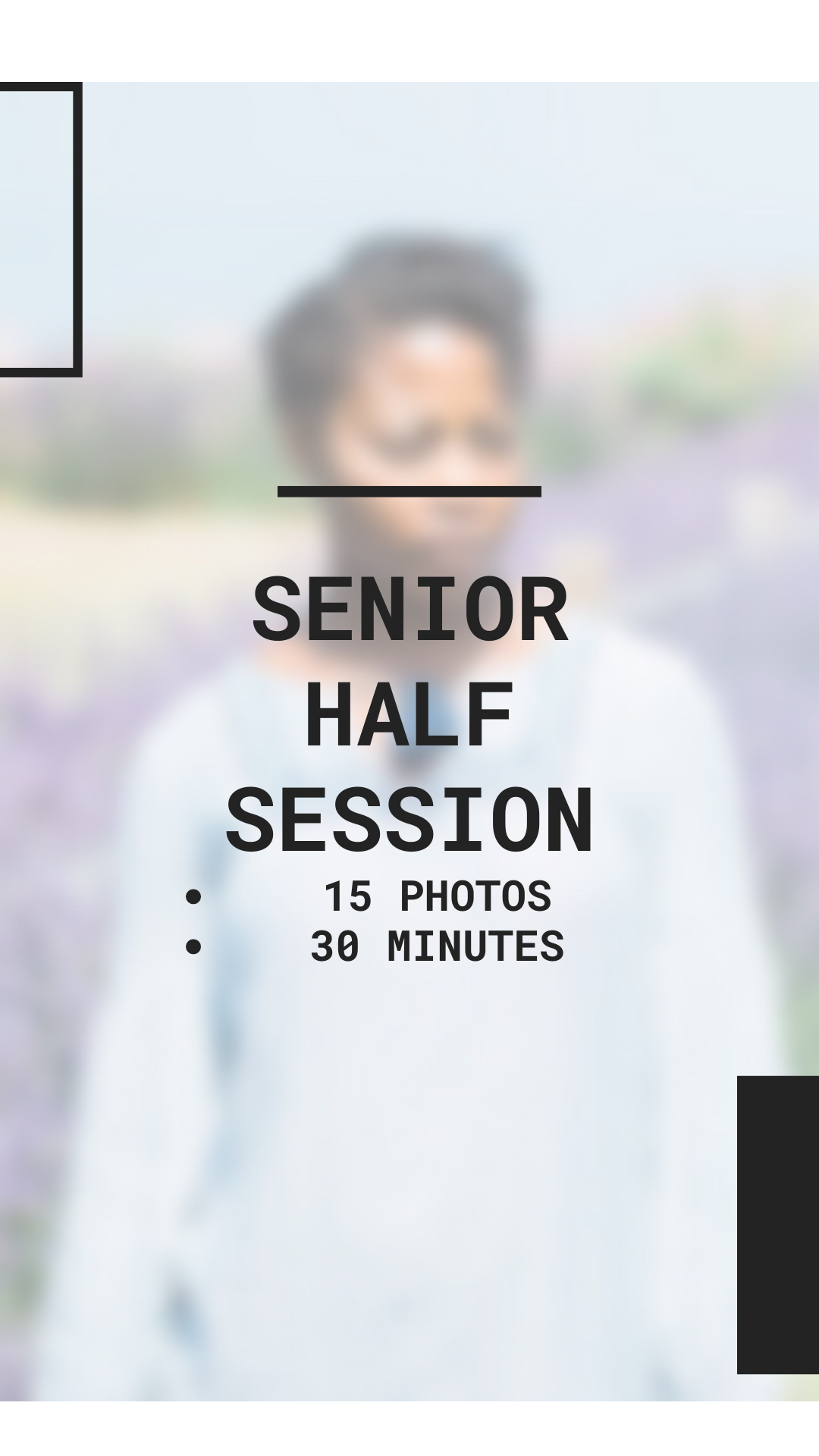 Invest › Senior Half Session - Final Payment Image 1 of 1 Senior Half Session - Final Payment $150.00 This is the final payment for your session. The full price is $250 and you have a $100 credit applied towards your balance. Quantity: Purchase Added! This is the final payment for your session. The full price is $250 and you have a $100 credit applied towards your balance.